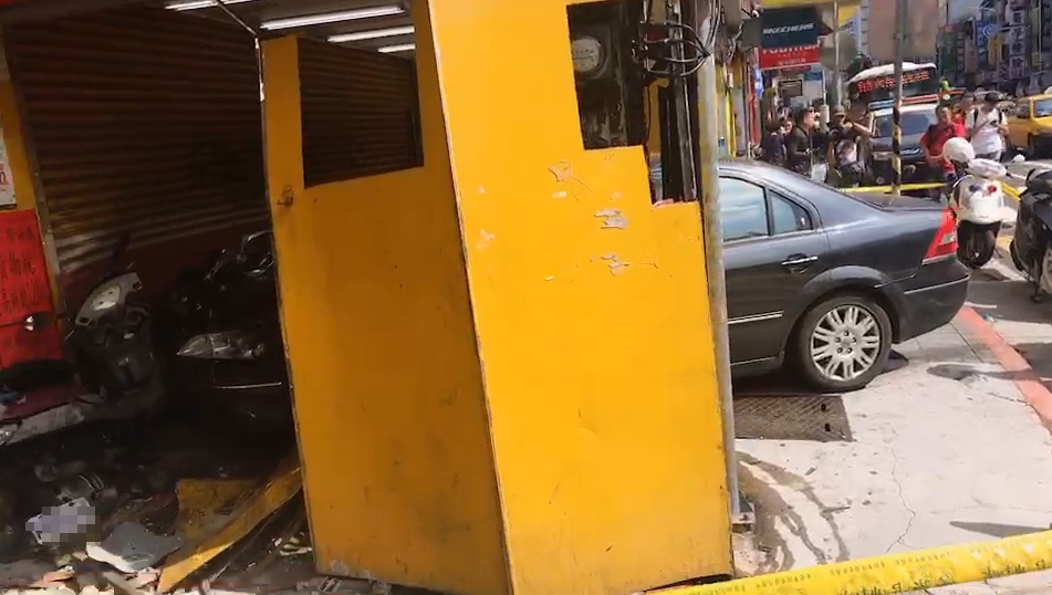據了解,汽車駕駛為一名老翁,事發當時行經八德路三段附近,原本要停等紅燈,沒想到卻把油門當成煞車誤踩,導致汽車暴衝撞進騎樓,停在騎樓上的機車幾乎被撞毀,也造成3人受傷,其中一名女子頭部有外傷,意識不清被送往醫院急救,另外兩人也被送往醫院治療。