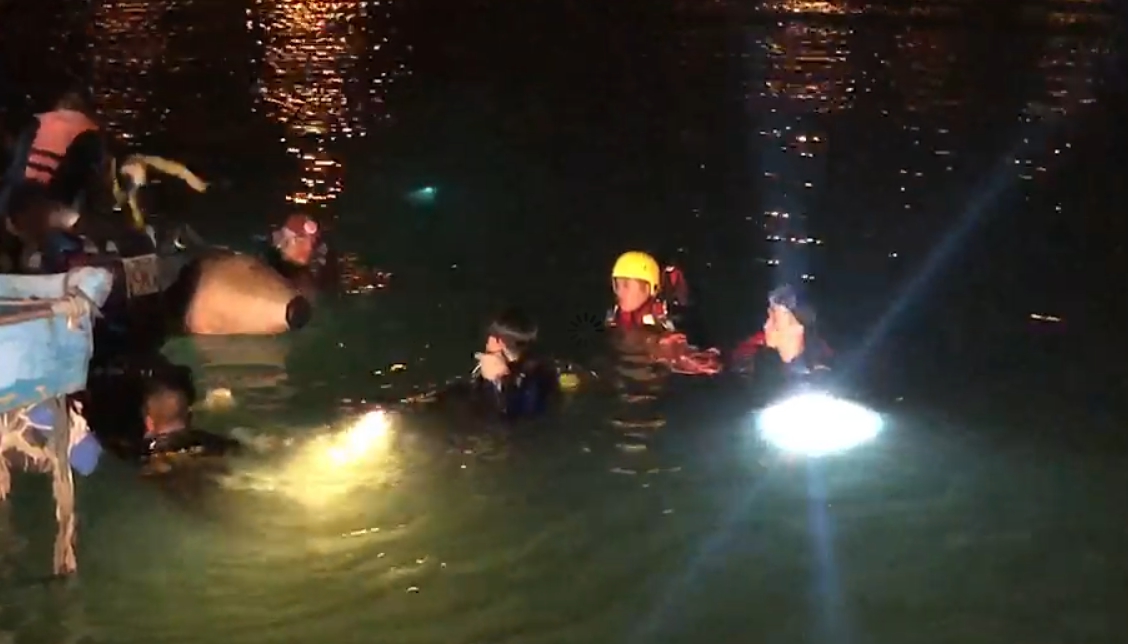 ▼目前警消仍持續在落海水域搜索,確認車上是否還有其他乘客。(圖/東森新聞)