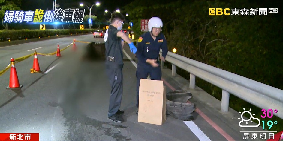 ▼北淡水發生一起婦人騎車返家遭後方車輾斃的死亡車禍。(圖/東森新聞)