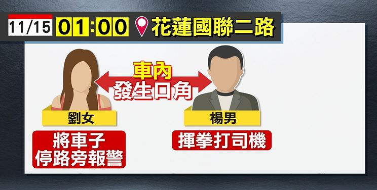 ▼花蓮一名劉姓女計程車司機,和酒醉的楊姓乘客發生口角爭執。(圖/東森新聞)