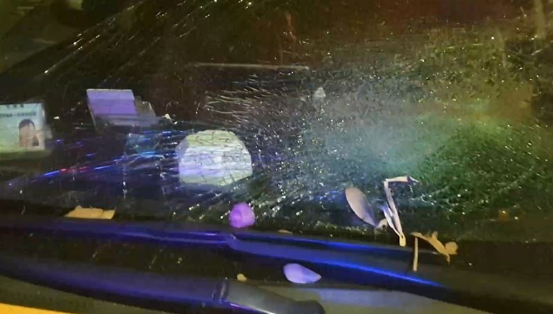 計程車擋風玻璃嚴重破碎,裂成蜘蛛網狀,旁邊還有被砸爛的盆栽,這起事故糾發生在花蓮國聯二路,15日凌晨1點多,當時劉姓女駕駛,載送喝醉酒的楊姓乘客,雙方先在車內發生口角,沒想到越吵越激烈,楊姓男子動手揮拳打了對方,女駕駛嚇得趕緊將車子停在路旁報警,員警趕到場後男子持續發酒瘋,還拿起路旁的盆栽,砸毀車輛擋風玻璃,態度十分惡劣。