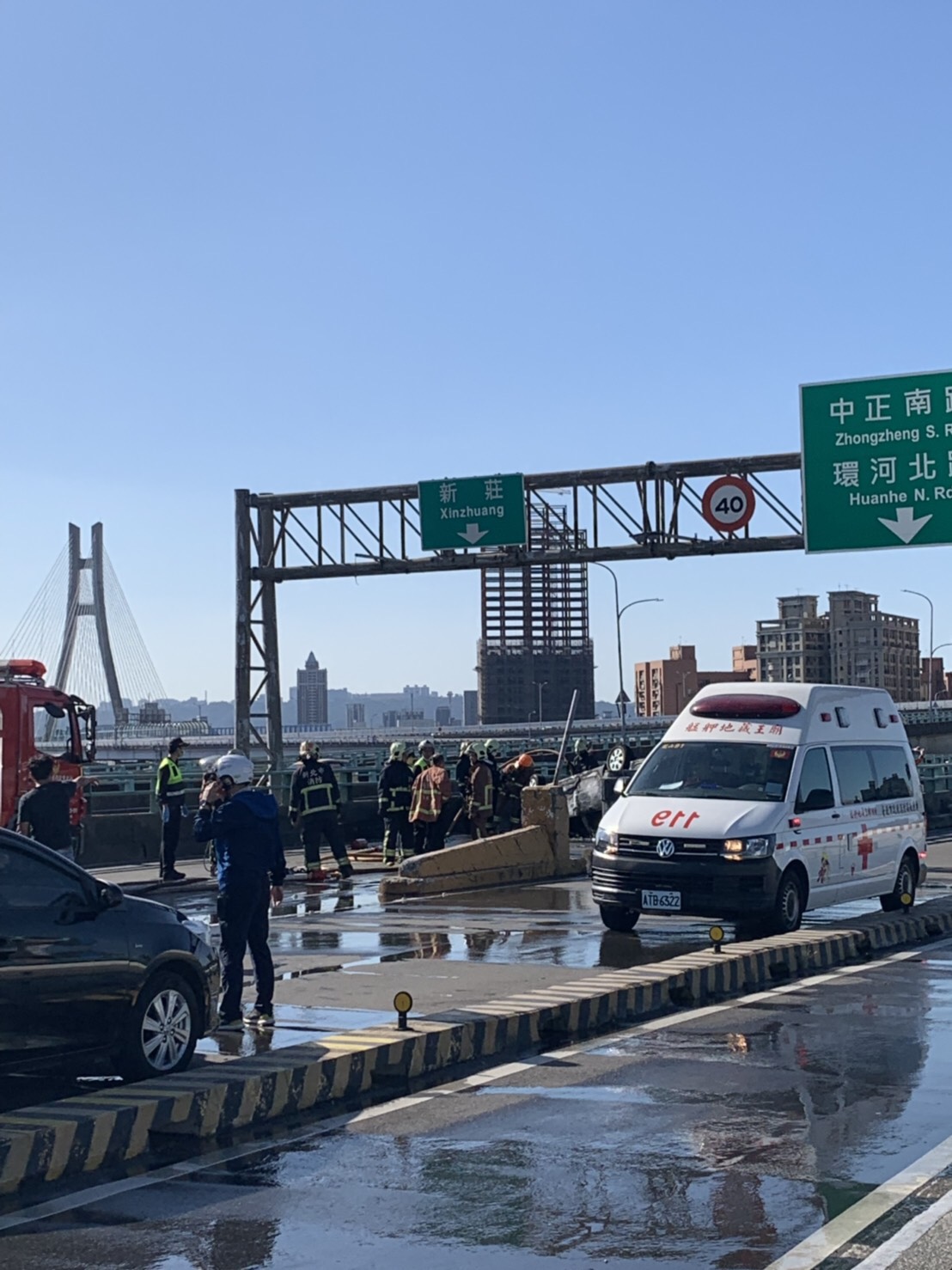該起事故導致中興橋雙向交通一度受阻,目前全線封閉、車流嚴重回堵,原定下午2時30分恢復通車,但現場仍在處理中,提醒用路人提早繞道。