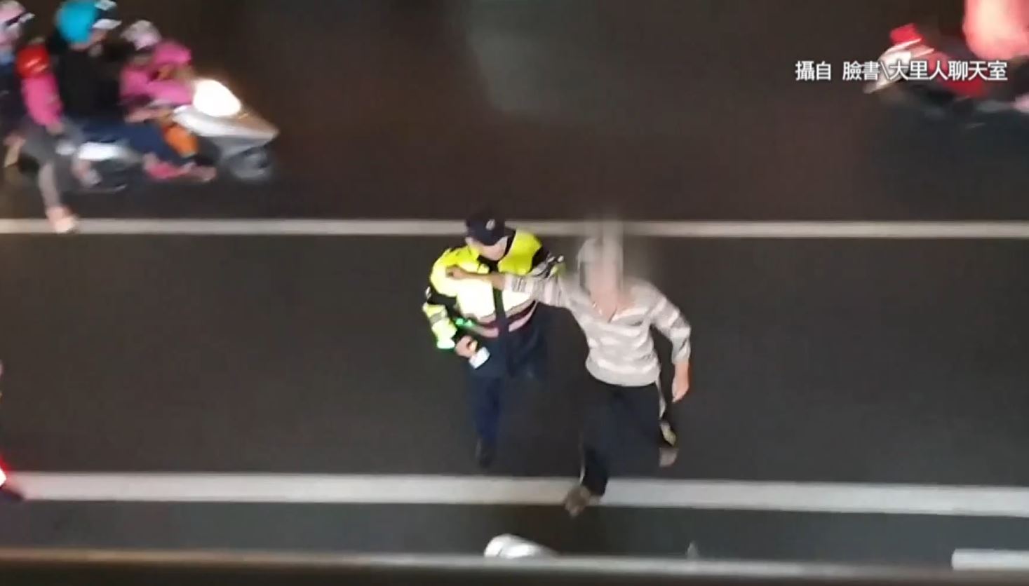 15號晚上就在台中大里一處路口,附近居民在樓上拍下這齣,大約拖了20分鐘的鬧劇,直批根本浪費社會資源。
