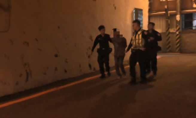 胡姓兇嫌在住宅,被員警壓制在地,隨後上銬,帶回警局。