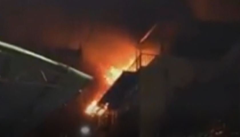 ▼火舌不斷從屋頂竄出,火勢全面燃燒還延燒到隔壁棟民宅。(圖/東森新聞)