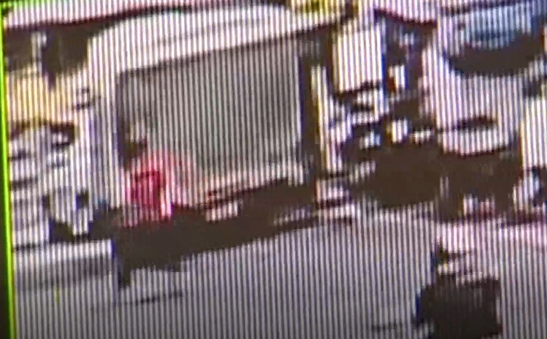 監視器畫面中,貨車司機迴轉將車停放在店門口,下車準備進到屋裡,車上沒人,但這時卻看到車子突然往前走。
