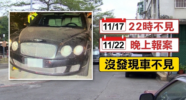 高雄一名車主向警方報案,說他的賓利車停在公園旁不見了,警方隨即組成專案小組進行調查。車主把車停在距離公司不到50米的公園旁,事隔5天才發現車不見,加上這輛車車齡十年車種特殊,很少人會加保竊盜險,但車主投保,若是失竊可賠償三百到四百萬,另外,嫌犯供稱要拆解零件變賣,實際上卻把車停在倉庫沒拆解,諸多疑點有待警方調查釐清。