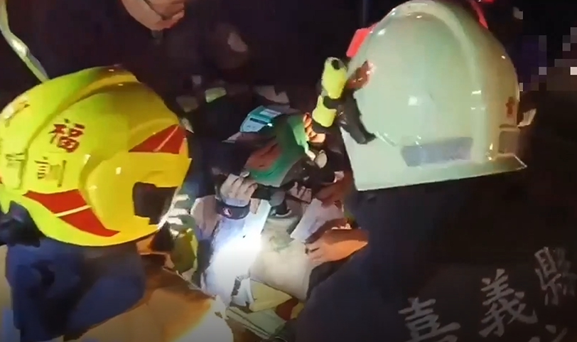 趕到的救援人員將受困在車內的洪姓男子搶救出來時,他的意識昏迷生命垂危,119人員連忙為他急救。