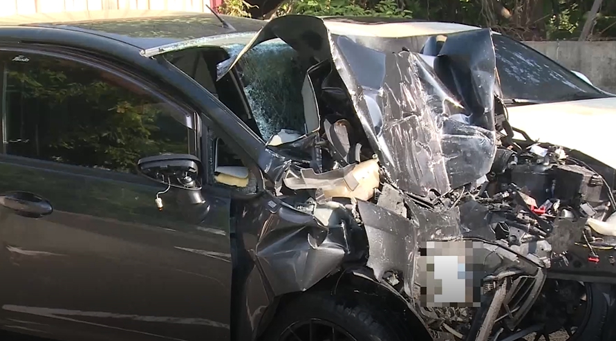 附近住戶:「他由民雄開過來,算是直接往牆上撞上去,碰一聲,我跑出來看時,跑出來看到他,撞上牆車子一直冒煙,我在陽台上就看到了,可能不知道路況要轉彎,他開很快,他前面的車停下來幫忙,六、七個人下車來拉他,拉不出來,後來由救護車和破壞器材才拉出來。」
