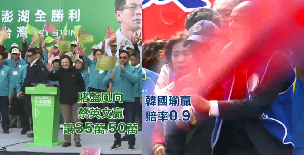 警方攻堅,一舉破獲或是持拘票直接逮人,清查之後發現端倪,以近日新竹逮捕,地下賭盤的案例來說,賭盤風向,還是以藍綠2黨為主,尤其以總統蔡英文領先,還打出讓35萬票或50萬票的標準,而賭韓國瑜贏的賠率有0.9,雖然韓國瑜一度喊出,遇上民調都要說唯一支持蔡英文,來打亂民調,讓多數組頭沒了參考標準,寧願小賠不要大輸,紛紛不玩了,但仍然有民眾4年一次,就是要賭一把,但就怕被抓還幫候選人做特殊代號。