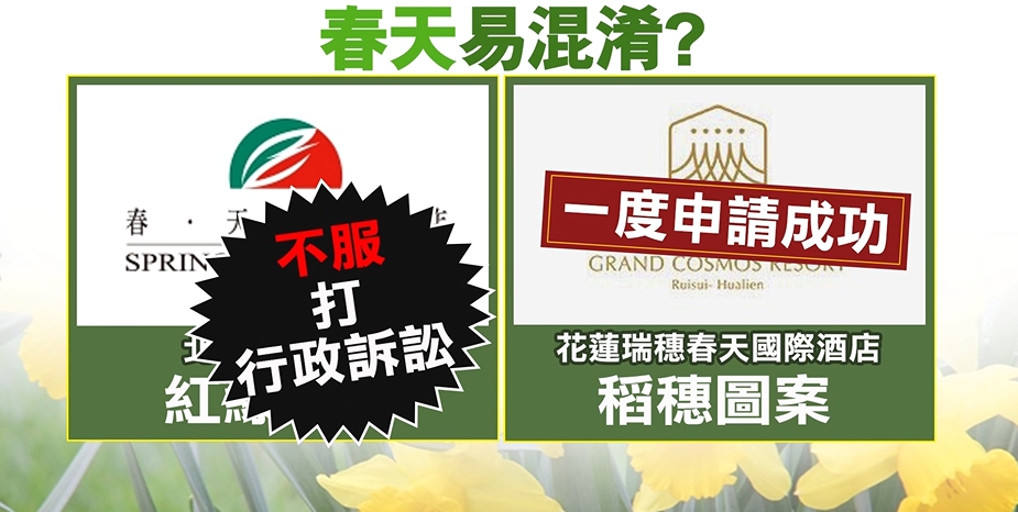 瑞穗春天國際酒店被譽為台版霍格華茲,一開始主張其他飯店還有餐廳,也有春天兩個字,他們logo明顯和北投春天酒店不同,兩家溫泉飯店,北投春天酒店成立於1975年,而瑞穗春天國際酒店2019、1月試營運,法官就怕消費者容易搞錯,因此判瑞穗春天國際敗訴。