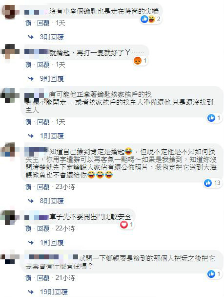 這篇貼文曝光後,引起許多網友討論,「開不起瑪莎拉蒂,但能撿到瑪莎拉蒂的鑰匙,也是要有緣份」、「很識貨啊」、「想撿還撿不到」,但也有人認為「說不定他也只是想拿去警局報案而已啦」。最後車主家人也說,「感謝好朋友對於事件的探討與關心,我們非常希望和對方聯繫上」。