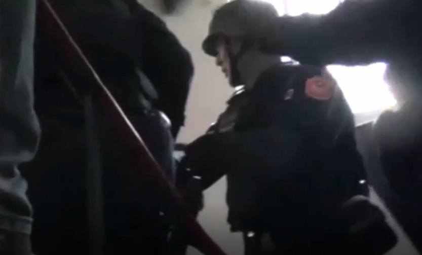 警方:「來快點,進去在裡面,爬上去了,蹲下。」