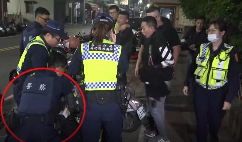 完全無視公權力,鬧事的男子友人對著警方不斷叫囂,最後員警使出辣椒水才將他強制帶上車。