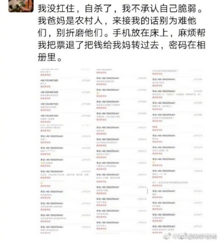 ▼女大生生前最後PO文。(圖/翻攝自澎湃新聞微博)
