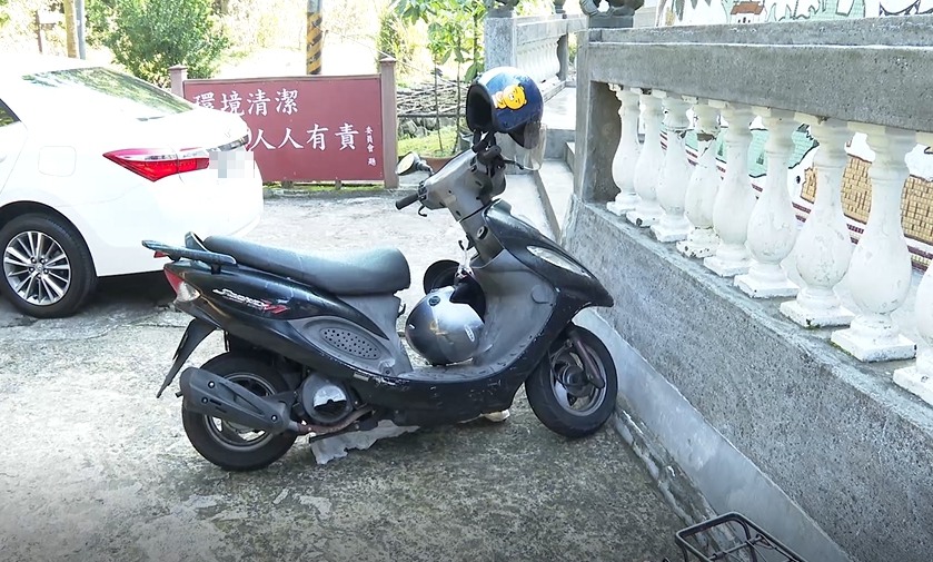東森新聞記者李家名:「當時男星哥哥就把機車停在這個位置,並且沿著宮廟旁邊的登山步道,一路上山,根據警方現場採證,發現母子倆都沒有明顯掙扎的痕跡,因此現場遺留的寶特瓶,便成為關鍵證據,一併被帶回調查化驗。」