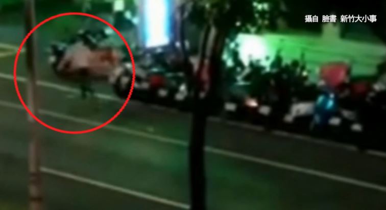 ▼一名穿著白色上衣的男子還在機車旁點鞭炮。(圖/翻攝自臉書 新竹大小事)