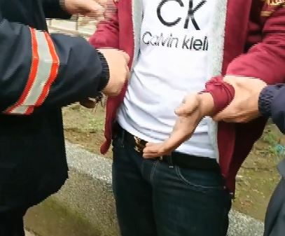 多名員警將,穿著紅色外套的男子,團團包圍,將他雙手上烤,並仔細檢查,他放在地上的隨身物品,剝絲抽繭,要查出男子身分,因為這名男子,幾分鐘前被發現,攜帶2把手槍,和警方發生肢體衝突,場面危急,因為事發地點剛好是,海巡隊門口,海巡隊員聽到聲音,上前幫忙制伏。
