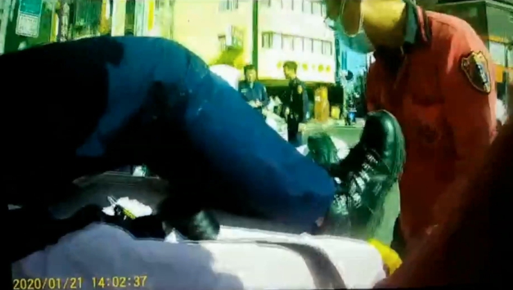 這名被撞的蘇姓女警身上有多處都受到擦傷,救護車也立即趕往現場幫女警檢查傷勢,把人抬上擔架放進救護車後,送往附近醫院治療。