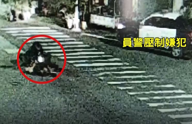 但是很快的就被員警制伏,另一名員警停好車後,二人合力將嫌犯壓制在地上銬,而和嫌犯扭打的員警也受傷。