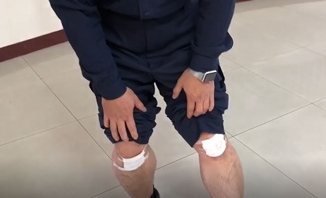 ▼和嫌犯扭打的員警膝蓋受傷。(圖/東森新聞)
