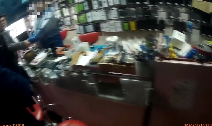 終於等到時機,員警快跑衝進通訊行,喝令裡面的人通通不准動。