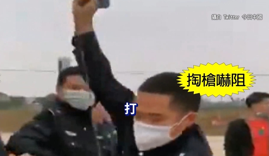 ▼男子不斷言語挑釁,公安氣得上前理論,甚至一度掏槍嚇阻。(圖/東森新聞/翻攝自今日中國推特)
