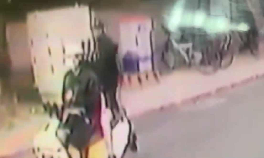蔡阿嘎和懷孕8個月的二伯騎車出門停等紅燈時,遭黑衣男持鋁棒毆打,造成膝蓋挫傷;警方調案發地周邊監視器,發現黑衣男犯案後徒步逃離,再由一名男子騎車接應,專案小組以車追人,昨天在新北市林口區一間汽機車改裝廠內,逮捕25歲陳姓主嫌和騎車接應的35歲董姓共犯。