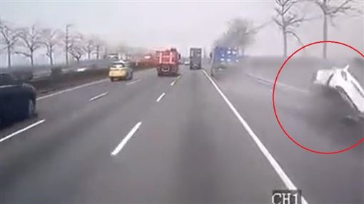 行車真的要小心!近期一名網友在臉書社團上po出一段影片,5日上午11點左右,往國道1號北向353.3公里處發生一起小客車起火燃燒意外,原因是大貨車行駛路肩時,突然出現一輛白色賓士車想超越,不料距離和寬度不夠,當場慘遭夾擊,賓士車瞬間衝出護欄外,情況相當慘烈。