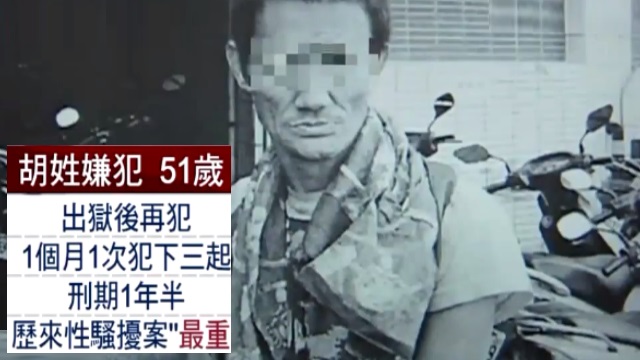 胡姓男子,曾經因為性騷擾、公然猥褻,入獄多次,出獄後今年3月到5月間,又在台北車站地下街,又對女子襲胸犯案,被重判一年半,以借錢為理由趁機接近落單女子再趁機襲臀襲胸,台北地院日前將3罪各判刑8個月,合併應執行1年半有期徒刑。