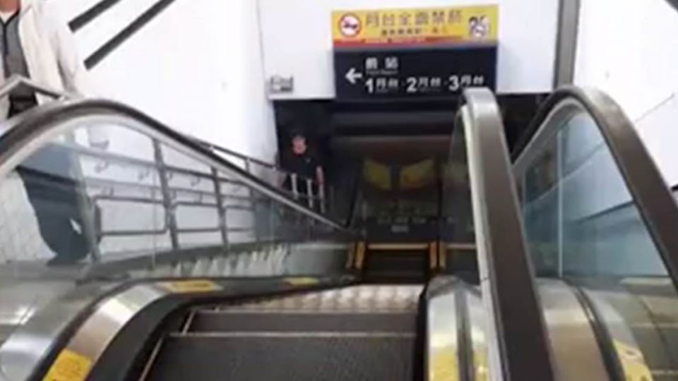 手扶梯「倒退嚕」,導致出站旅客跌成一堆。花蓮火車站後站今天上午10點左右,