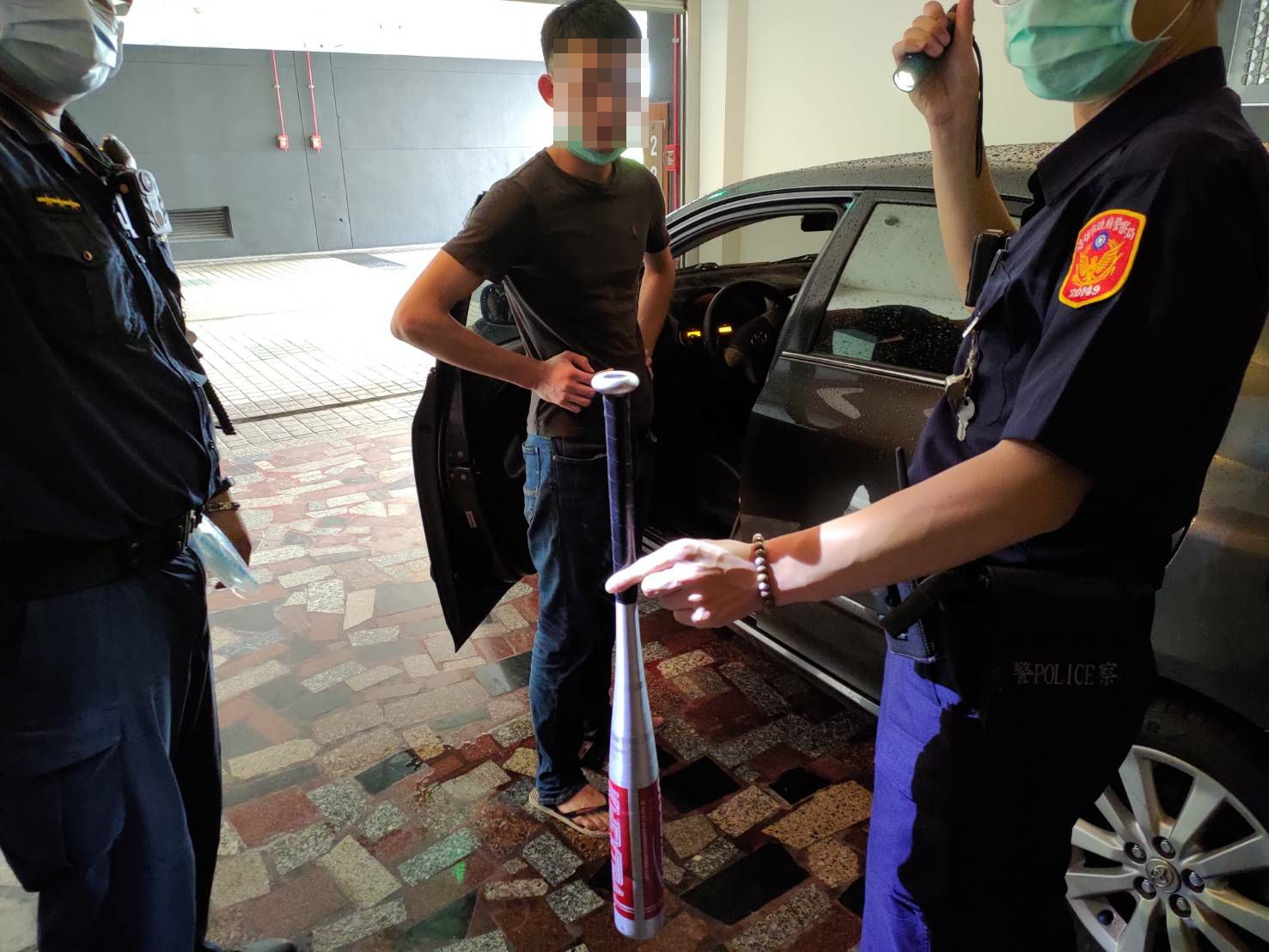 ▼警方在三名擄人男子車內起出棍棒。(圖/翻攝畫面)