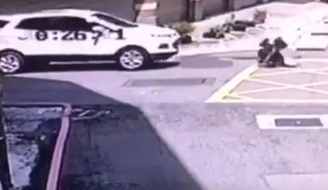 ▼為阻擋毒蟲林姓員警趴在引擎蓋上,卻慘遭拖行、撞飛。(圖/東森新聞)