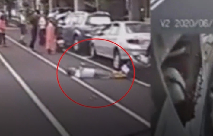 ▼一名無辜的83歲騎士慘遭夾擊。(圖/東森新聞)