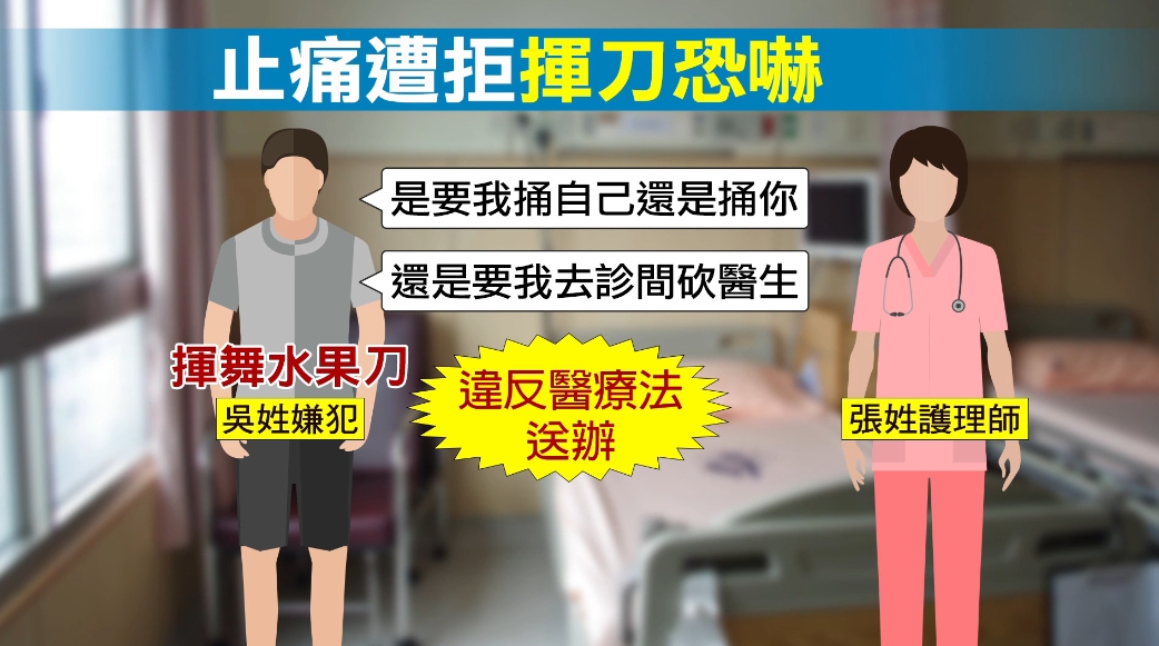 ▼吳男要求打止痛,遭拒後揮刀恐嚇。(圖/東森新聞)
