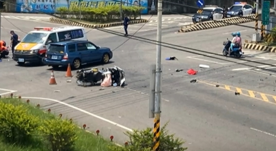 事故現場,重機零件、車殼,散落一地,連安全氣囊都爆開,可想撞擊力道,十分猛烈,嚇壞不少附近民眾。