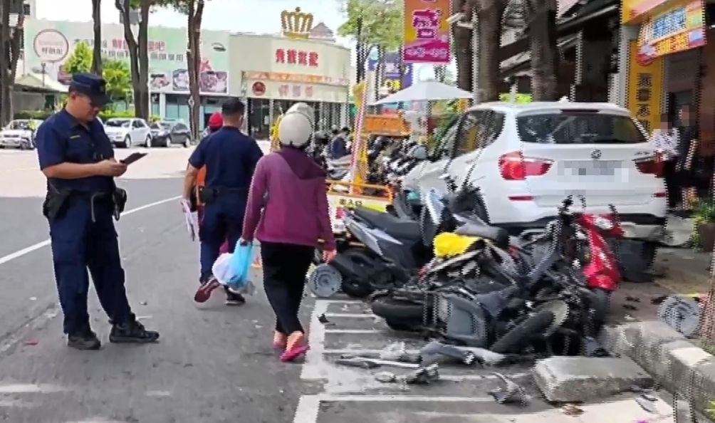 ▼林女開著BMW撞上小黃後,又衝撞到路旁18輛機車。(圖/東森新聞)