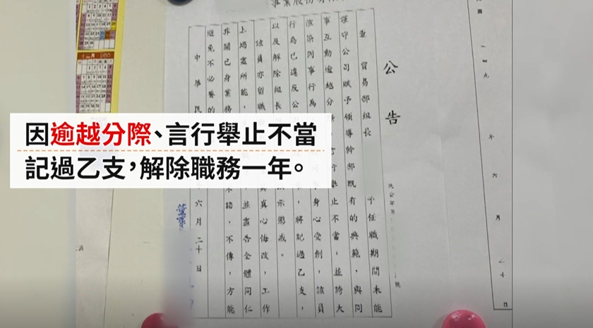 ▼李性組長遭公司記過一支,解除職務一年。(圖/東森新聞)