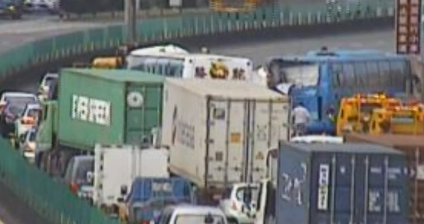 ▼事發當時為上班尖峰時間,國道三號一度回堵長達4公里。(圖/東森新聞)