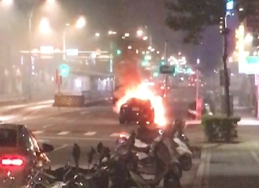 今天凌晨4點多,一名20歲的男駕駛行經台北市中山區南京東路二段時,車頭突然冒出濃煙,駕駛趕緊下車查看,不料過沒多久火舌竄出,整台車燒成火球,駕駛跑到附近超商請店員協助報警後,就失去蹤影。超商店員表示,當時有位身上有刺青的男子到店裡求助,自己得知發生火警後有出來查看,發現是車頭引擎處起火,趕緊打電話報警。