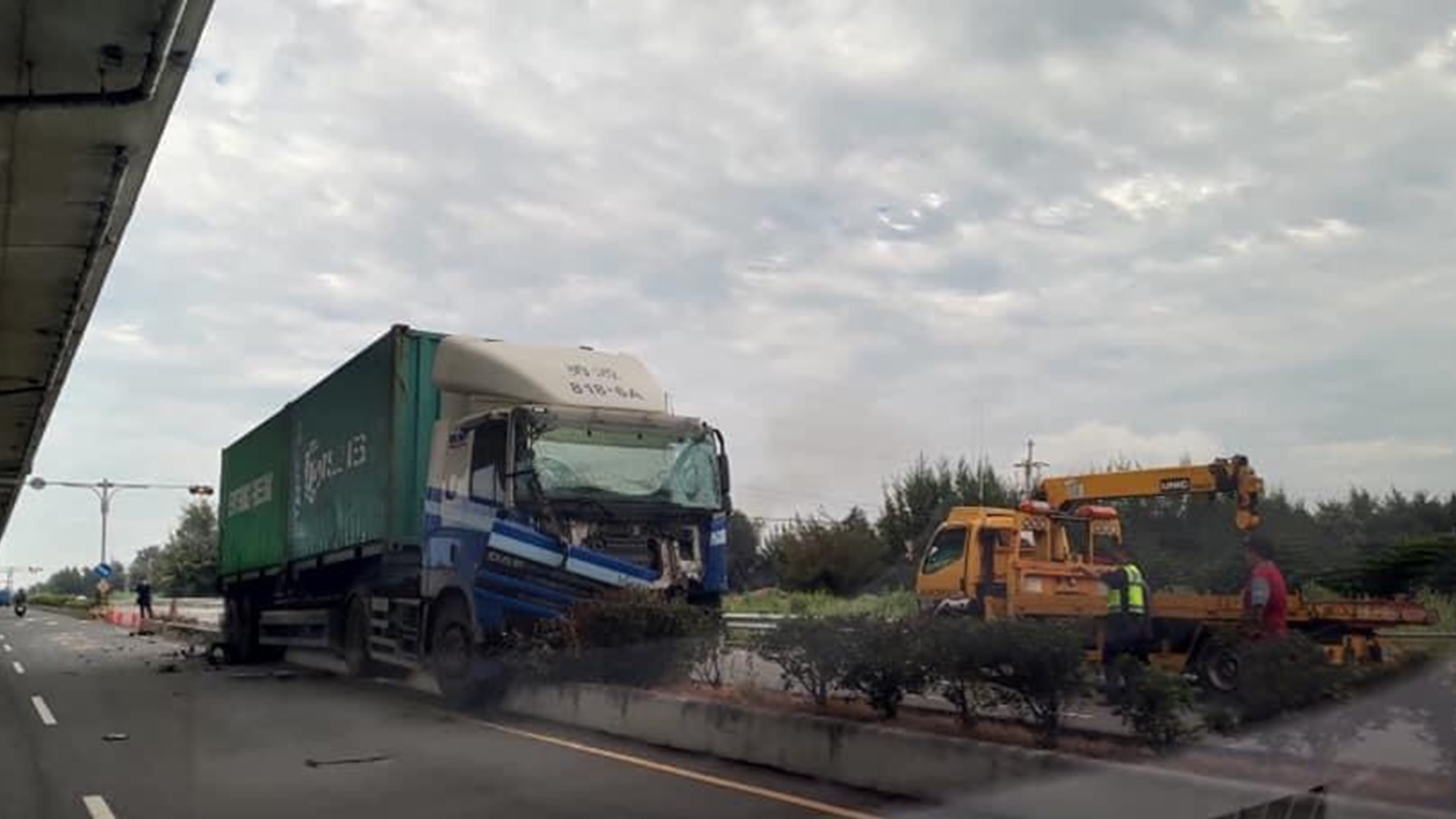 今日清晨五時左右, 台17線彰化縣大城鄉村南路發生一起嚴重車禍,1輛貨櫃車疑似因為闖紅燈與小客車相撞,造成小客車凹陷變形,而車內的蘇姓駕駛及坐在副駕駛座的周姓女子受困在車內,消防人員接獲通報後到場,2人皆已沒有生命跡象,送醫後仍宣告不治,而貨櫃車駕駛則是無明顯外傷,詳細肇事原因仍有待進一步釐清。