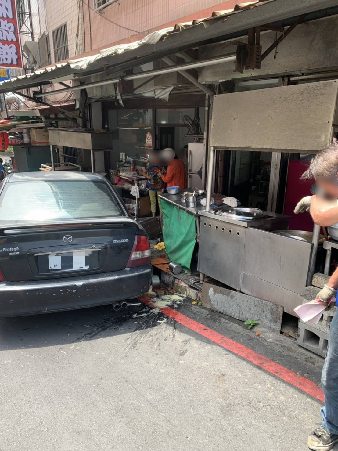 ▼經警方調查,起因是民營拖吊車拖吊違規轎車,在返回拖吊場途中,不慎脫鉤,導致轎車滑行衝入麵攤。(圖/東森新聞)
