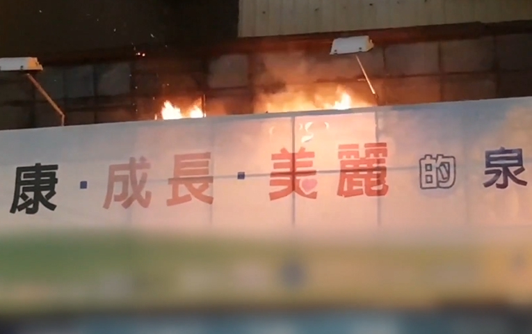 藥局二樓 凌晨冒出黑煙,女副店長獲報趕到現場查看狀況,沒過多久火勢整個蔓延開來。橘紅色火燄越燒越旺,由於藥局內囤放酒精 ,但二樓又有大片帆布遮掩,導致雲梯車無法從外部灑水,擔心火勢一發不可收拾,消防員只能從下方灌救,並出動破壞器材。