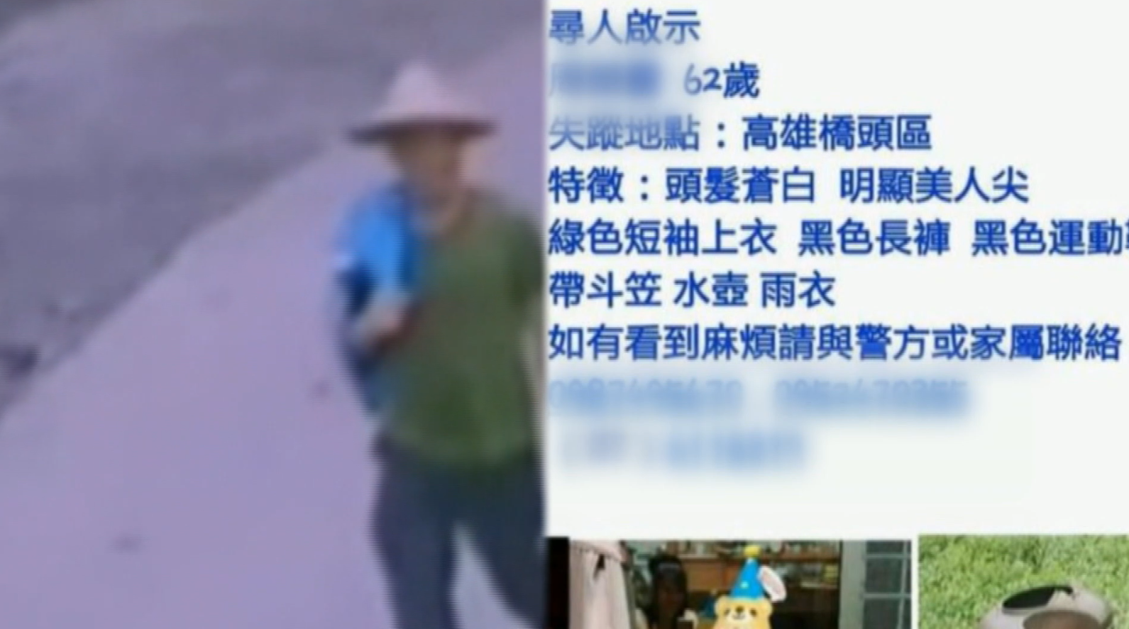 一名網友表示,自己的父親從去年7月10日離開家後,就再也沒回來,如今家人決定公開監視器畫面,希望大眾能幫忙協尋。監視器畫面中可以看到,失蹤父親身穿綠色上衣、並戴著斗笠,網友表示,爸爸走失那天,雨下得很大,家人都非常擔心,近日公布父親的長相特徵,希望熱心網友如果看見,能夠和家屬或警方連絡。