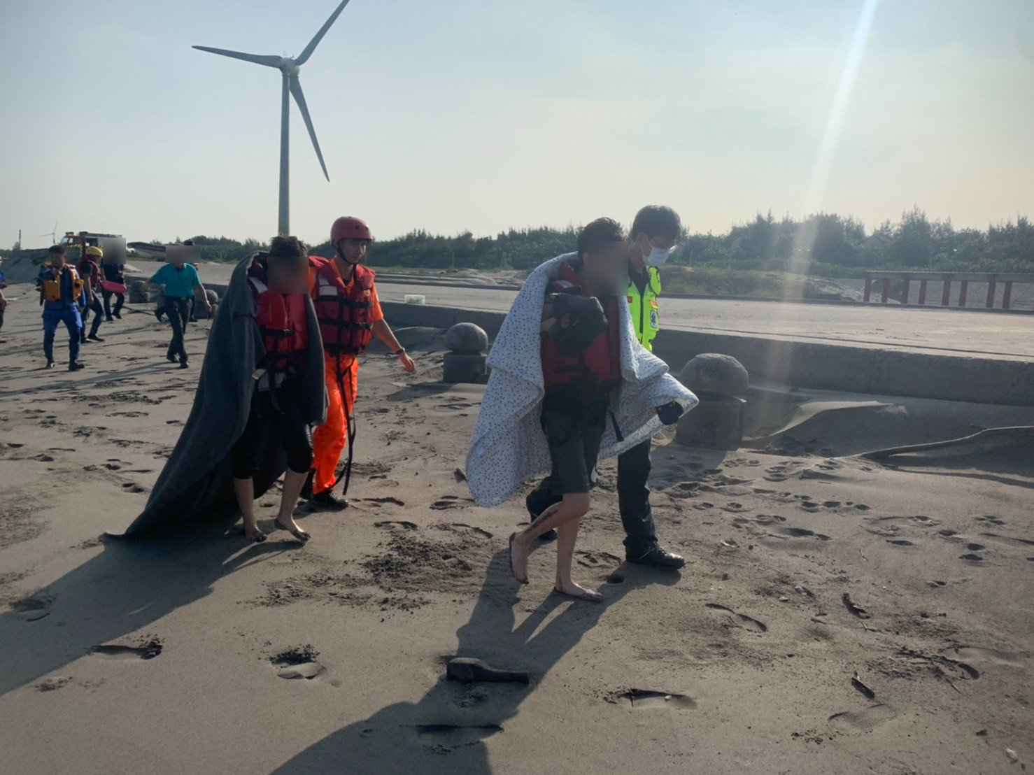 警消表示,受困的兩名女子均為20歲左右,分別是梅女及陳女,兩人於清晨時前往大安港沙洲踏浪看海,沒想到卻在離岸約500公尺處受困,由於適逢漲潮,等2人發現水位越來越高時,已經無法自行回到岸邊,情急之下只好向消防局求救。
