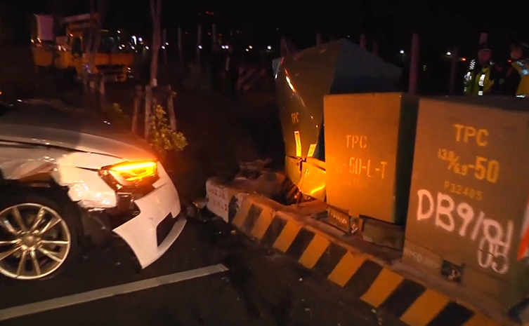 12日凌晨12點多在台中市南屯區發生2輛黑白奧迪名車對撞事故,黑的撞路樹,白的撞壞變電箱,台電漏夜緊急派人維修,這兩輛奧迪市價都超過4百萬元,根據了解,黑色奧迪車主洗完車後,疑似因為搶快跨越馬路左迴轉,以為後方白色奧迪會禮讓,加速通過,結果雙方都會錯意了,發生對撞。