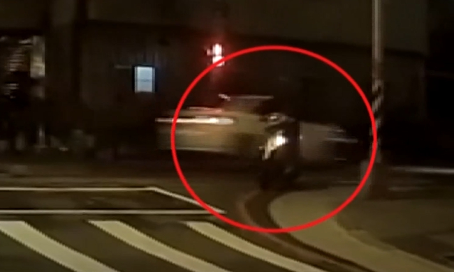 民眾深夜開車經過台中市南區,開到一處路口停等紅燈,這個時候右側一輛雙載機車準備左轉,突然左方一輛綠燈直行自小客往前開,煞車不及往機車屁股撞下去,碰得好大一聲,撞擊瞬間,後方另一輛機車打著方向燈,騎在斑馬線上往左靠,發現前方機車遭撞,車頭還頓了一下,汽車差一點也要往他撞下去,這騎士疑似受傷騎士同伴,目擊車禍後停在路口,下車關心傷勢,並且通報警察和救護單位。