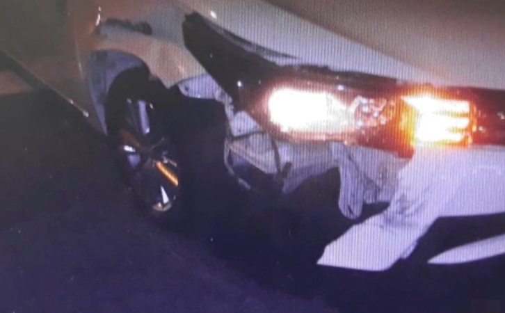 汽機車路口車禍,這一撞讓機車車殼被撞飛、零件四散,後座乘客雙腳一度反折,自小客右前車頭幾乎撞爛,看起來受損嚴重,撞擊力道之大可想而知。遭撞的雙載機車,騎士肋骨裂開,當下忍痛站起來,但後座乘客痛得根本站不起來,傷得不輕。