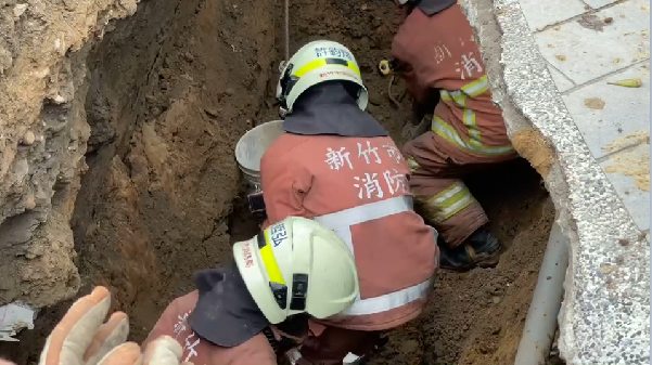 ▼新竹一名工人遭掩埋,消防隊獲報搶救中。(圖/東森新聞)