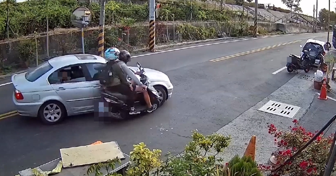 ▼機車閃避不及,撞上汽車。(圖/東森新聞)